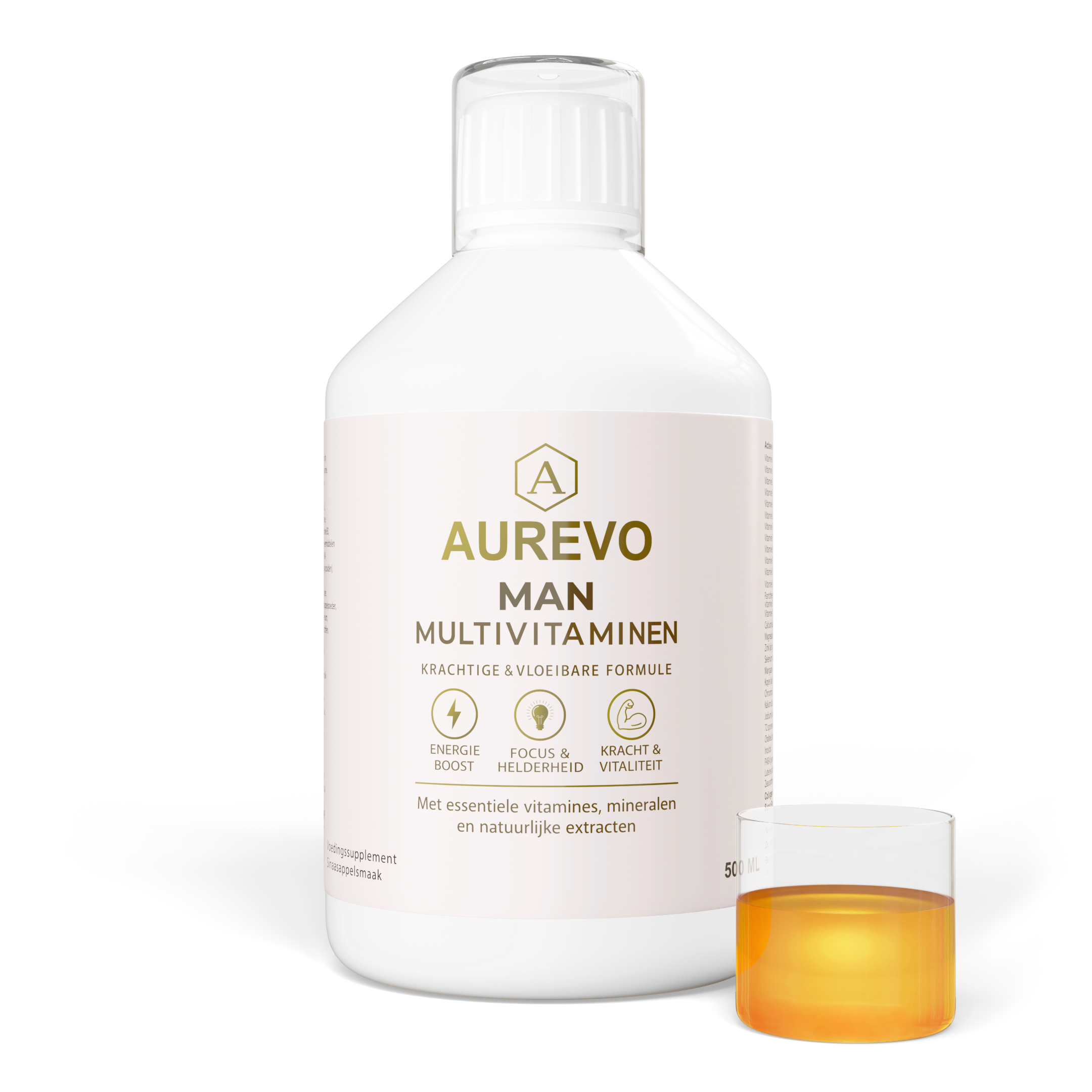 Aurevo is een premium vloeibare multivitamine, ontwikkeld voor eenvoudig dagelijks gebruik. Eén shot van 15 ml per dag bevat een zorgvuldig samengestelde complete mix van vitaminen, mineralen en extracten zonder toegevoegde suikers.